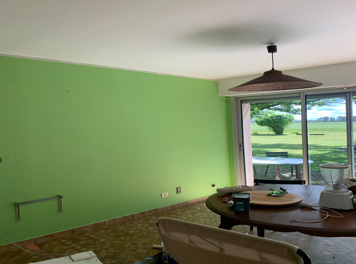 Nous avons principalement refait la peinture et retiré un gros meuble dans la chambre parentale, ainsi que les chaises qui prenaient beaucoup de place.